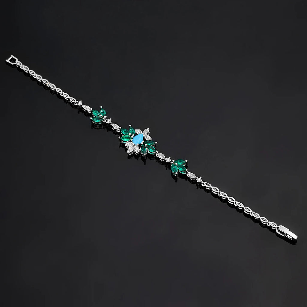 This 4-piece bridal jewelry set features vibrant turquoise cubic zirconia set in copper with refined geometric designs. Perfectly suited for weddings and bridal parties, it combines contemporary style with lasting brilliance, free from harmful chemicals to ensure both beauty and safety on your special day.
